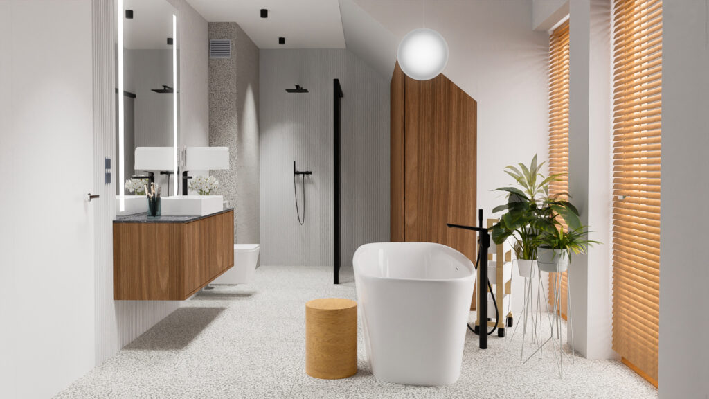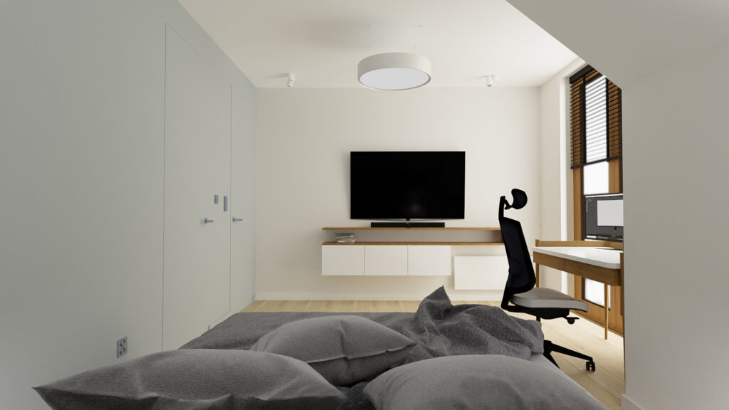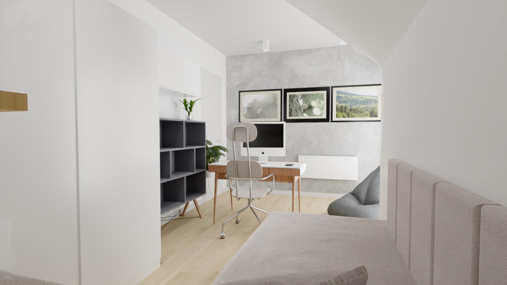 Projekt wnętrz dla rodziny 2+2. Budynek jednorodzinny w zabudowie szeregowej. Otwarta przestrzeń na dole pełni funkcję strefy integracji dla rodziny. Górna część podzielona na sypialnie dzieci oraz przestrzeń sypialniana dla rodziców. Założenie ideowe polegało na stworzeniu jasnej, funkcjonalnej z akcentami ponadczasowego designu przestrzeni dla rodziny.