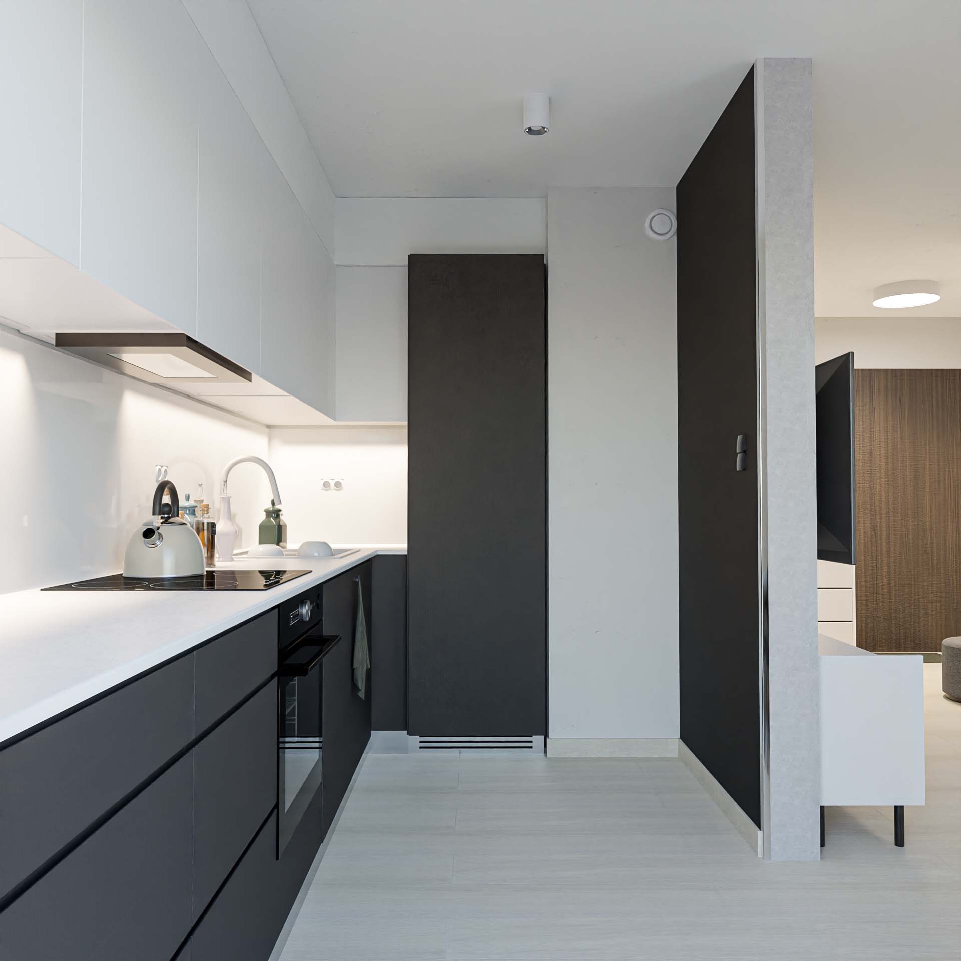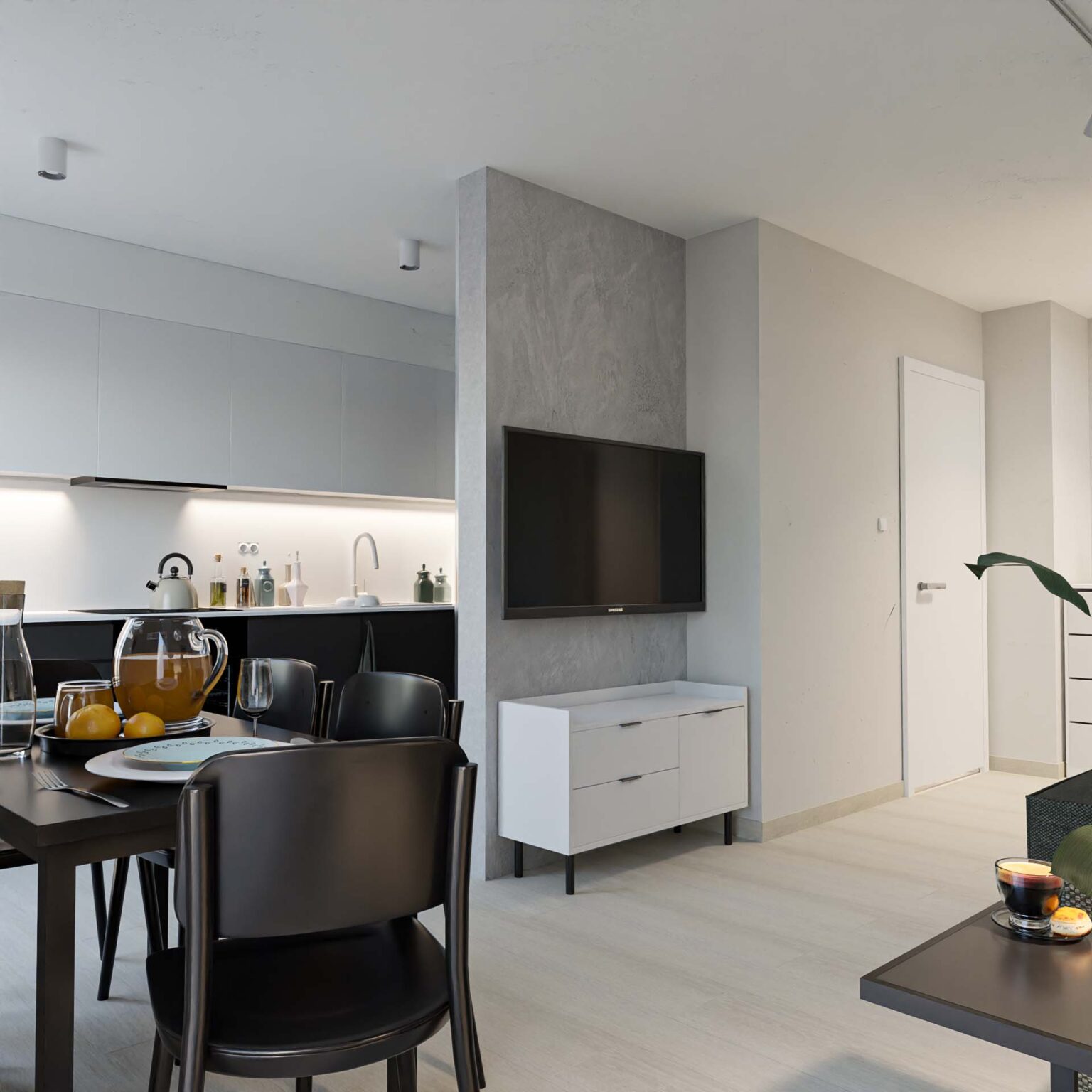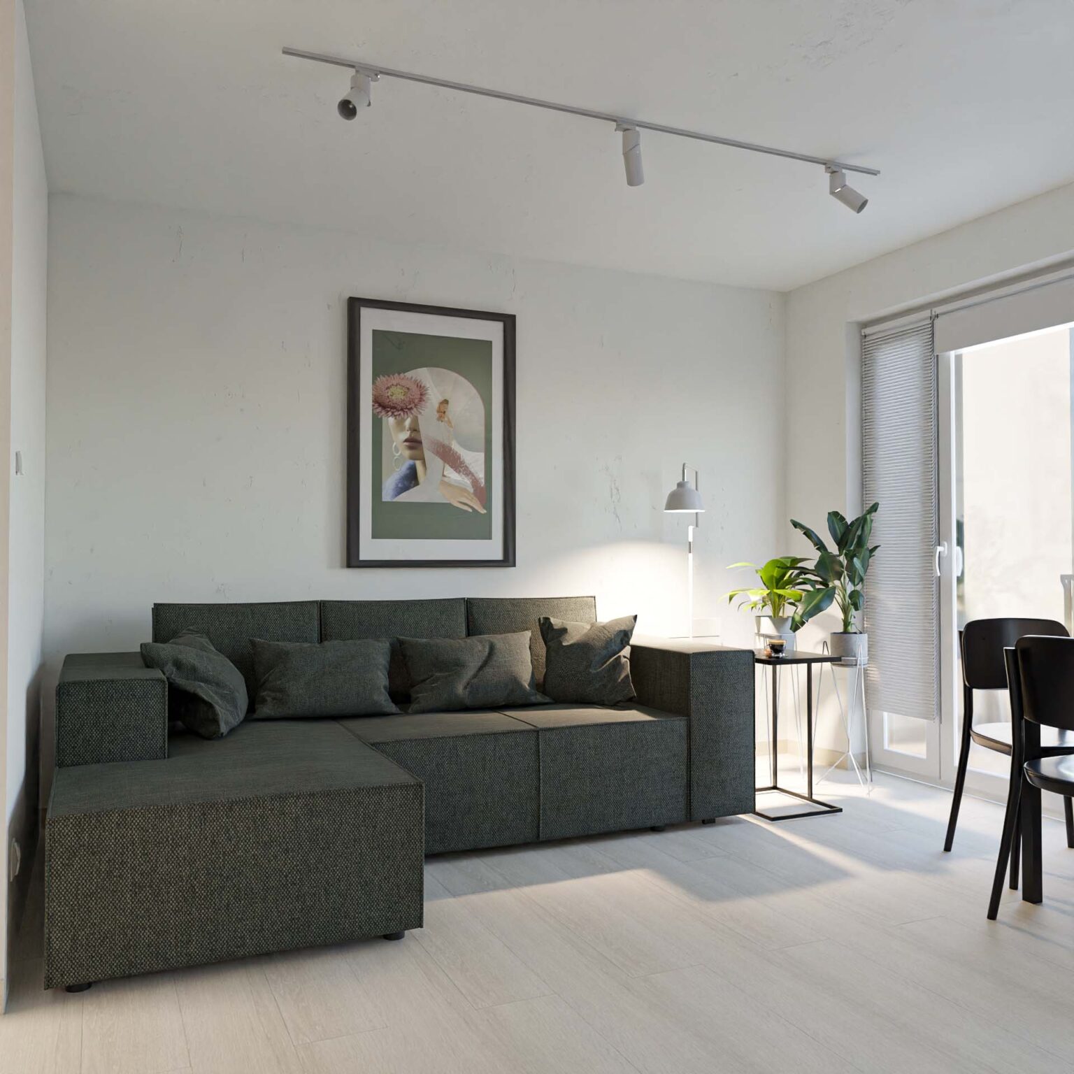 Projekt: KielceRok: 2023 Projekt wnętrz w stylu nowoczesnym. Kawalerka pod najem zawierająca wszelkie elementy wyposażenia oraz spełniająca oczekiwania jednego użytkownika lub pary.Inspiracja minimalizmem, akcentami kolorystycznymi, materiałowymi oraz biofilią.