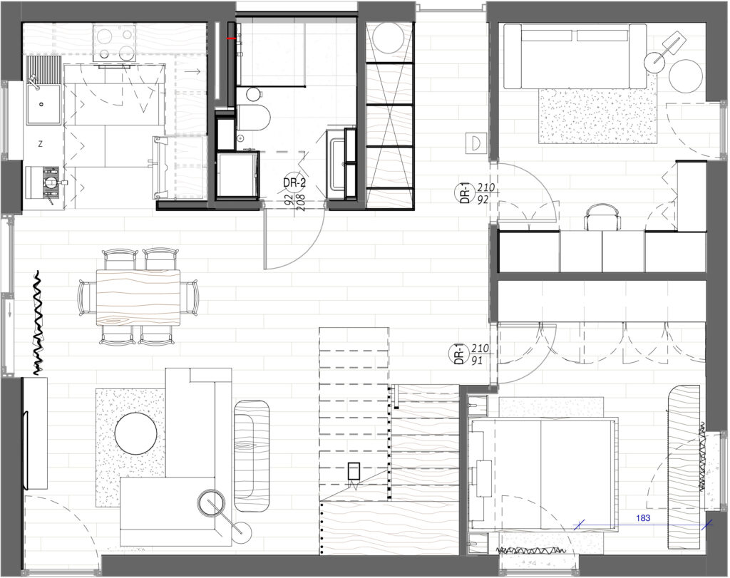 Projekt: Nowa WolaRok: 2023 Prywatna inwestycja zlokalizowana w zabudowie wielorodzinnej w Nowej Woli pod Warszawą.