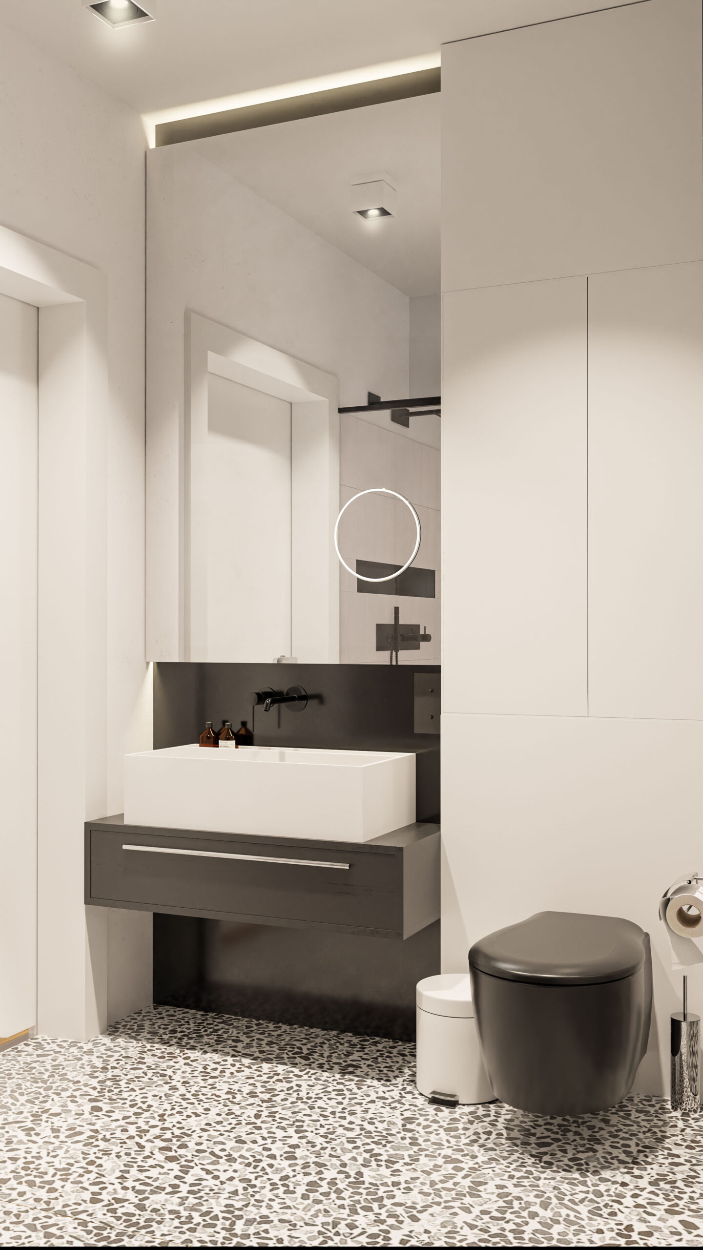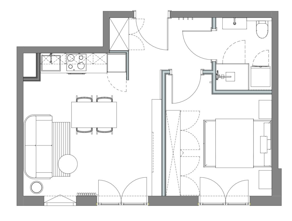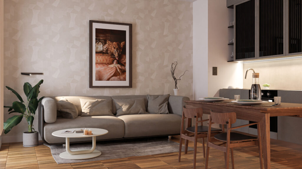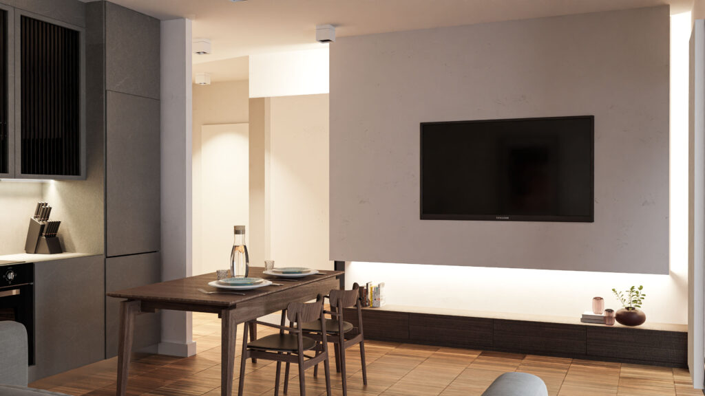 Prywatna inwestycja zlokalizowana w zabudowie wielorodzinnej w Pruszkowie. Wnętrze w stonowanej kolorystyce.