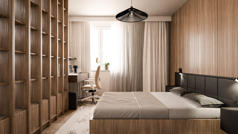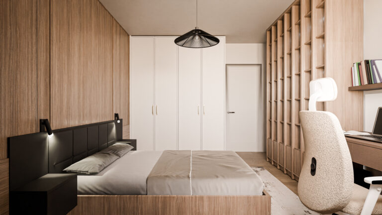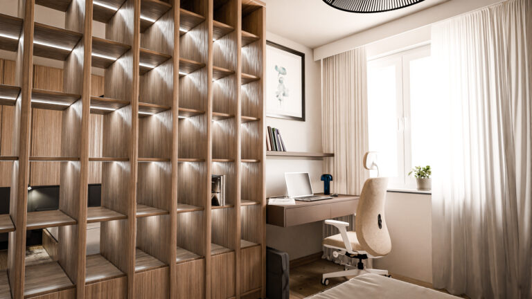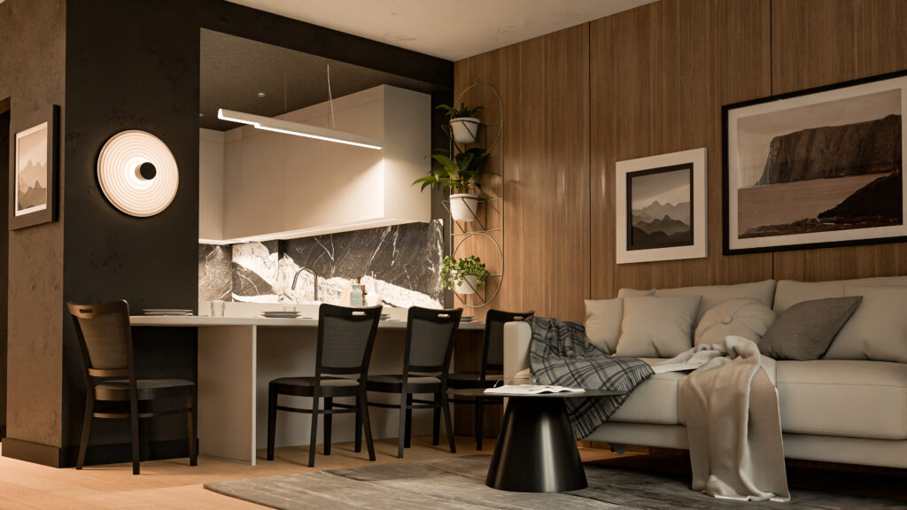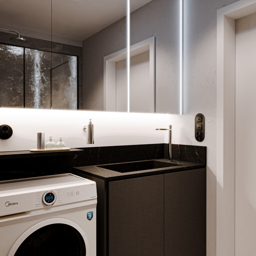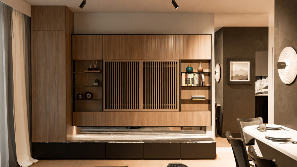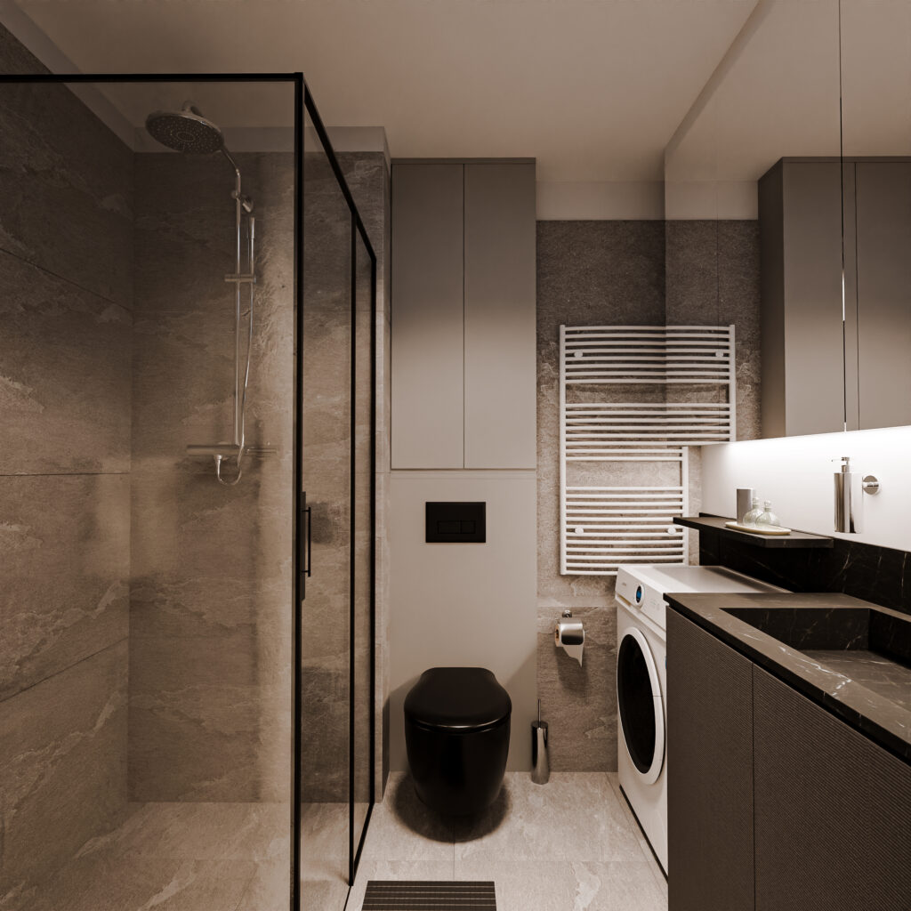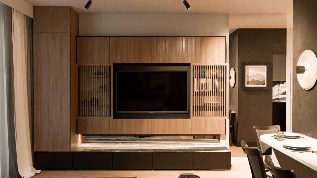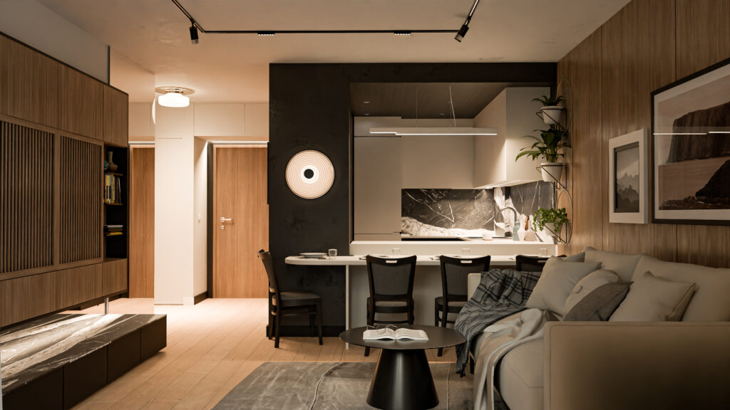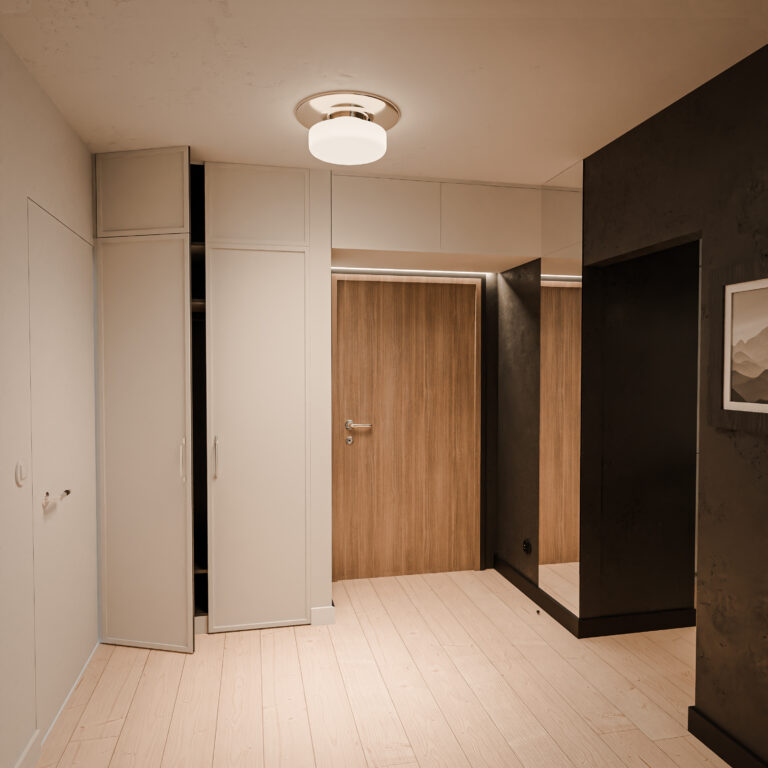 Projekt: Warszawa Wola IRok: 2024 Projekt wnętrz prywatnych mieszkania o pow. 49m2 w budynku wielorodzinnym na Warszawskiej Woli.Projekt zawiera całkowitą zmianę wykończenia wraz z nowymi elementami stolarskimi. Wnętrze w stylu Nowoczesnym.