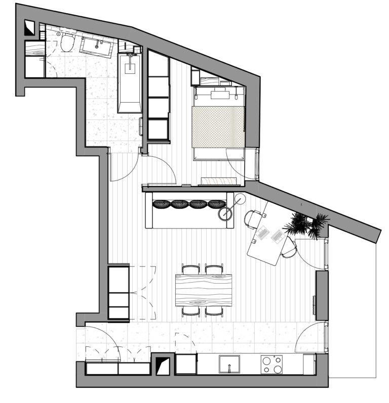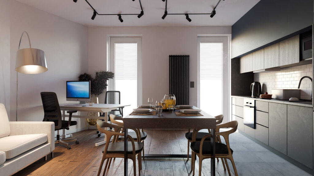 Projekt wnętrz w stylu loftowym dla pary programistów.